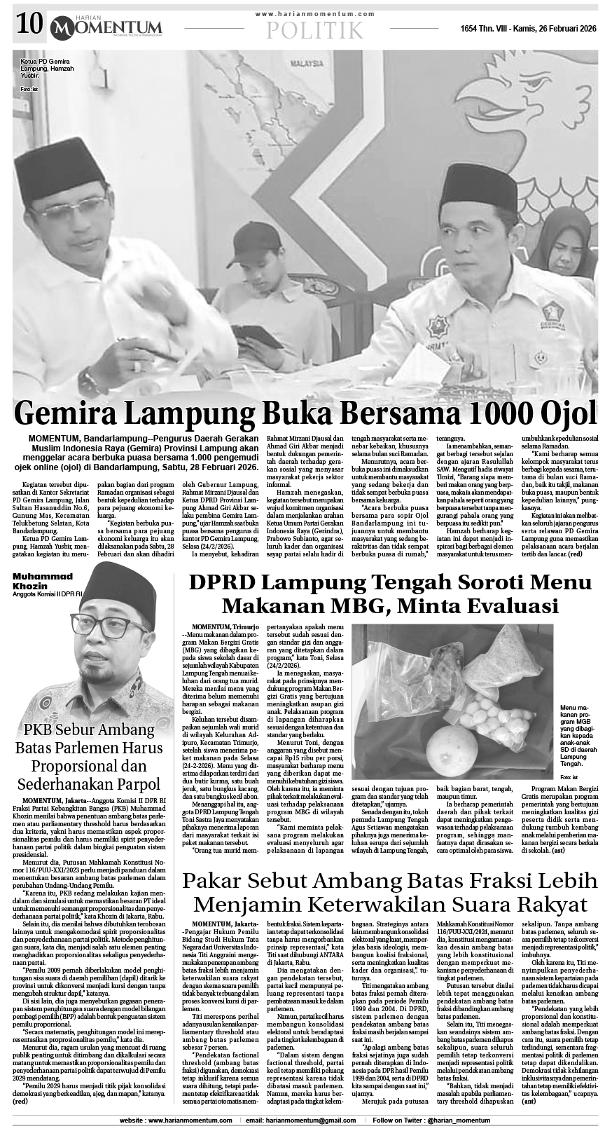 HARIAN MOMENTUM EDISI 26 FEBRUARI 2026