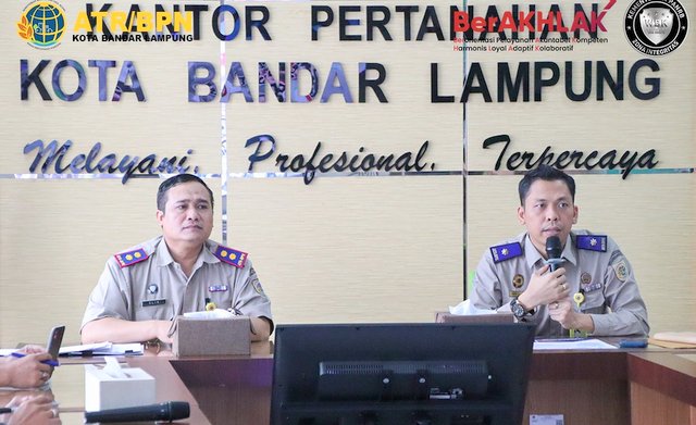 MOMENTUM, Bandarlampung -- Kepala Kantor Pertanahan Kota Bandarlampung, Ulin Nuha, memimpin rapat monitoring dan evaluasi (monev) pelayanan di Kantor Pertanahan Kota Bandarlampung, Selasa (24/2/2026).