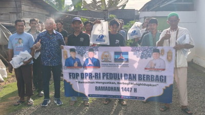 MOMENTUM, Blambanganumpu--Anggota DPR RI Fraksi Partai Demokrat Marwan Cik Asan, menyalurkan paket bingkisan dan takjil gratis kepada warga Waykanan, Jumat (27-2-2025). Kegiatan tersebut merupakan tindak lanjut instruksi Ketua Fraksi Partai Demokrat DPR RI Edhie Baskoro Yudhoyono (Ibas) melalui program FPD DPR RI Peduli dan Berbagi bertema “Ramadhan Menguatkan, Berbagi Menghidupkan”.