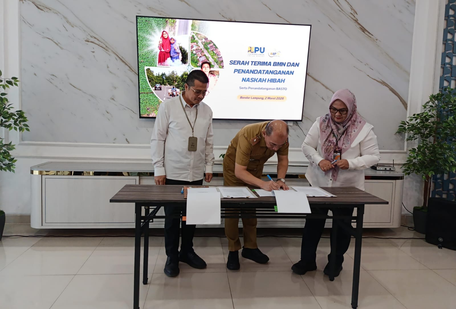 Serah terima itu berlangsung di Aula Balai Pelaksanaan Jalan Nasional (BPJN) Lampung, Senin (2-3-2026).