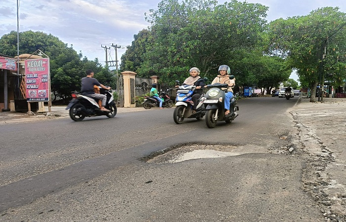 "Lubangnya cukup dalam, yang ditakutkan para pengendara saat melintasi jalan ini dapat terjatuh. Apalagi saat hujan turun, kan tidak terlihat lubangnya," ujarnya.