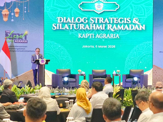 MOMENTUM, Jakarta -- Direktur Jenderal Penetapan Hak dan Pendaftaran Tanah (Dirjen PHPT) Kementerian Agraria dan Tata Ruang/Badan Pertanahan Nasional (ATR/BPN), Asnaedi, memberikan sambutan dalam acara Dialog Strategis dan Silaturahmi Ramadan Kapti-Agraria, Jumat (6/3/2026).