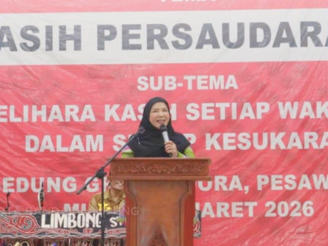 Dalam sambutannya, Eva Dwiana menyampaikan bahwa kegiatan Pesta Bona Taon dan pelantikan pengurus organisasi tersebut menjadi momentum penting untuk mempererat kerukunan serta memperkuat hubungan kekeluargaan di antara pengurus, anggota, dan masyarakat.