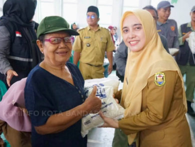 MOMENTUM, Bandarlampung -- Pemerintah Kota Bandarlampung menyalurkan bantuan beras kepada masyarakat di Kecamatan Panjang dalam rangka program bantuan sosial kesejahteraan keluarga, Senin (9/3/2026).