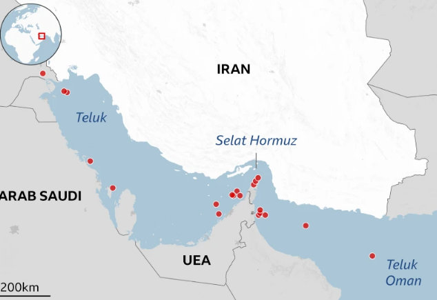 Ketiga, tentu saja Selat Hormuz. Lebarnya sekitar 30-an kilometer, tetapi dampak strategisnya menjangkau seluruh dunia. Ini sudah terbukti dan negara-negara lain merasakan dampaknya.