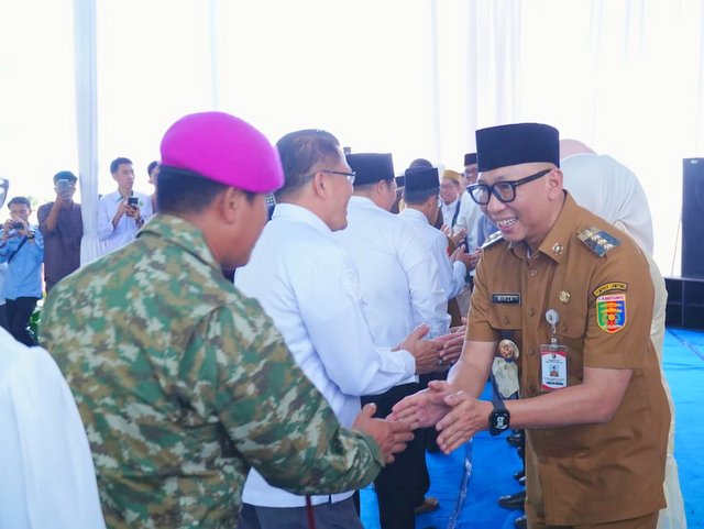MOMENTUM, Bandarlampung -- Gubernur Lampung Rahmat Mirzani Djausal alias Mirza mengajak seluruh aparatur sipil negara (ASN) memperkuat sinergi dan kepedulian terhadap masyarakat. Hal ini disampaikan dalam Halalbihalal Idulfitri 1447 Hijriah yang digelar Pemerintah Provinsi Lampung di halaman Kantor Gubernur, Senin (30/3/2026).