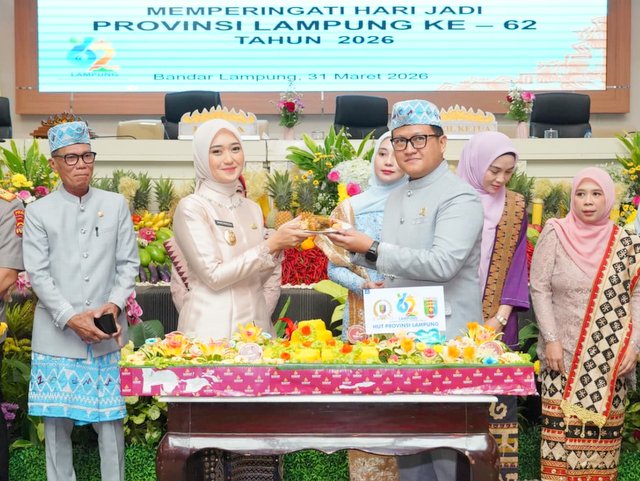 Sementara itu, Wakil Gubernur Lampung Jihan Nurlela menegaskan bahwa peringatan hari jadi menjadi momentum untuk meneguhkan arah pembangunan menuju daerah yang maju, berdaya saing, dan berdaulat secara ekonomi.