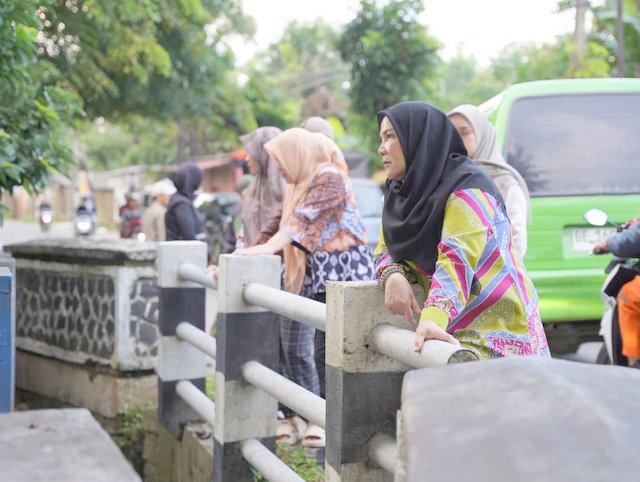 MOMENTUM, Bandarlampung -- Walikota Bandarlampung, Eva Dwiana, meninjau kondisi saluran irigasi di Kecamatan Tanjungsenang, Minggu (8/3/2026).