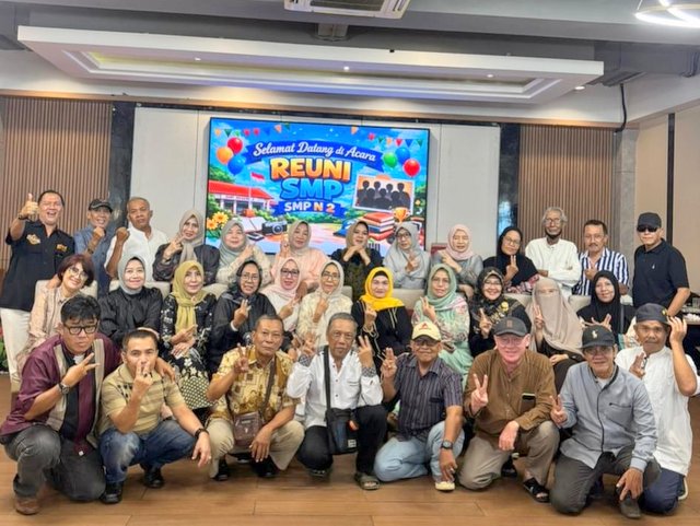 MOMENTUM, Bandarlampung -- Alumni SMP Negeri 2 Bandarlampung (Spanda) angkatan 1982 menggelar kegiatan halalbihalal dalam suasana penuh kekeluargaan di Bukit Randu Resto, Bandarlampung, Sabtu (4/4/2026).