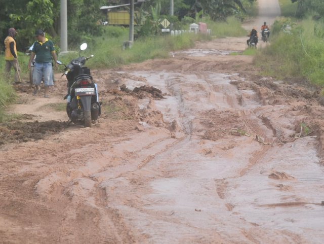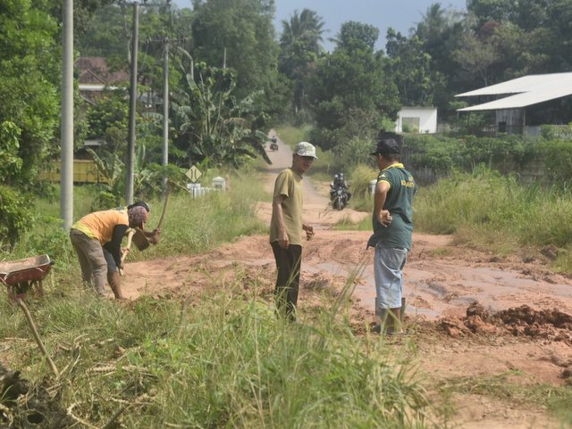 Ia menambahkan, kecelakaan ringan seperti pengendara motor yang terpeleset sudah sering terjadi di jalur tersebut. Dengan peralatan seadanya, warga berupaya meratakan permukaan jalan. Sejumlah operator traktor yang melintas juga turut membantu.