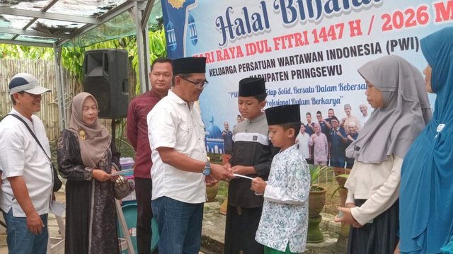 MOMENTUM, Pringsewu -- Keluarga besar Persatuan Wartawan Indonesia (PWI) Kabupaten Pringsewu menggelar halalbihalal Idulfitri 1447 H/2026 M, Rabu (8/4/2026). Kegiatan ini menjadi momentum mempererat silaturahmi sekaligus berbagi santunan kepada warga kurang mampu.