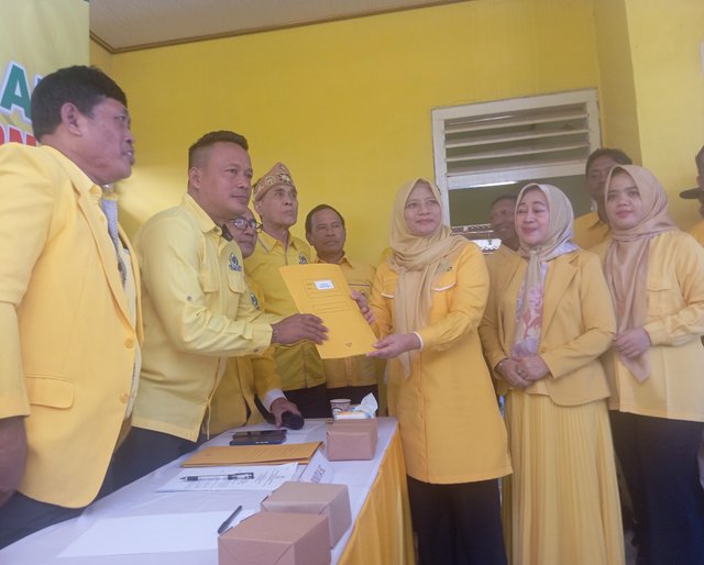 Ririn yang juga menjabat Wakil Ketua Bidang Pemberdayaan Perempuan DPD Partai Golkar Provinsi Lampung, menjadi satu-satunya kandidat setelah mengembalikan berkas pendaftaran pada Jumat (10/4/2026) di Sekretariat Golkar Pringsewu.