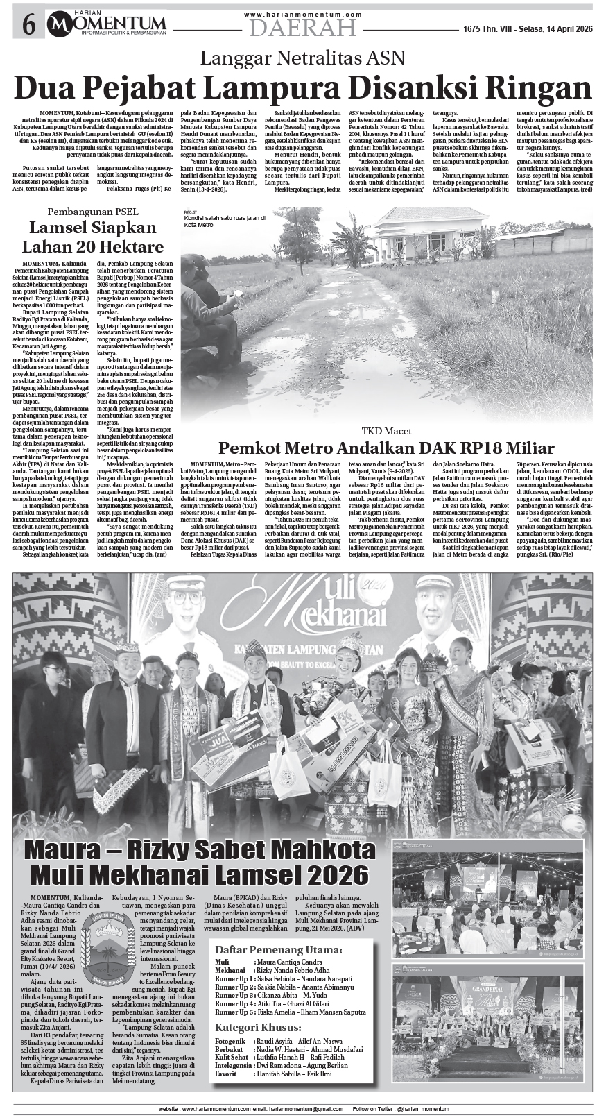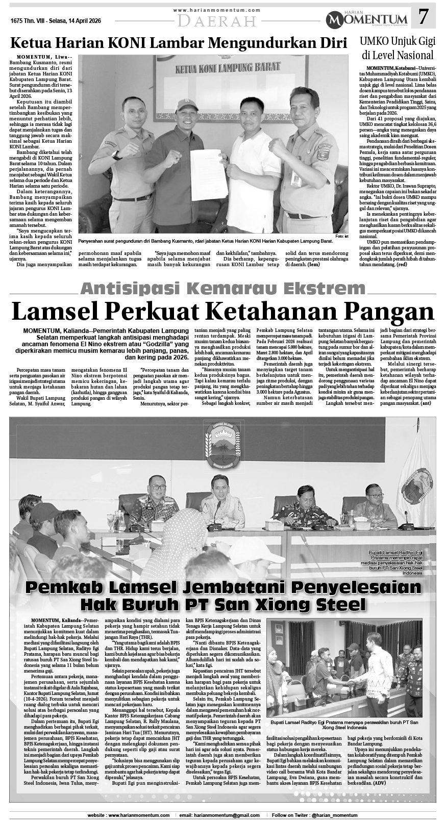 HARIAN MOMENTUM EDISI 14 APRIL 2026 ...