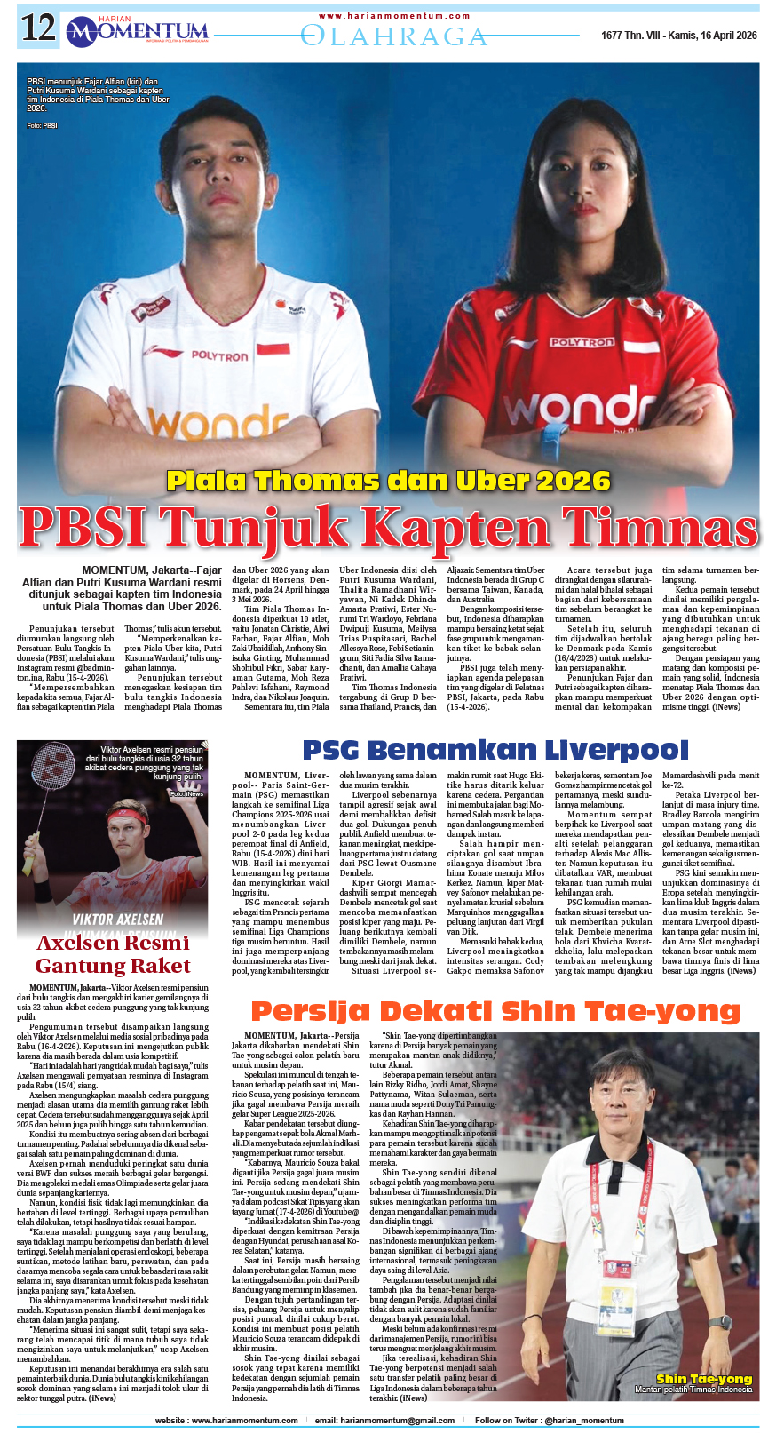 HARIAN MOMENTUM EDISI 16 APRIL 2026
