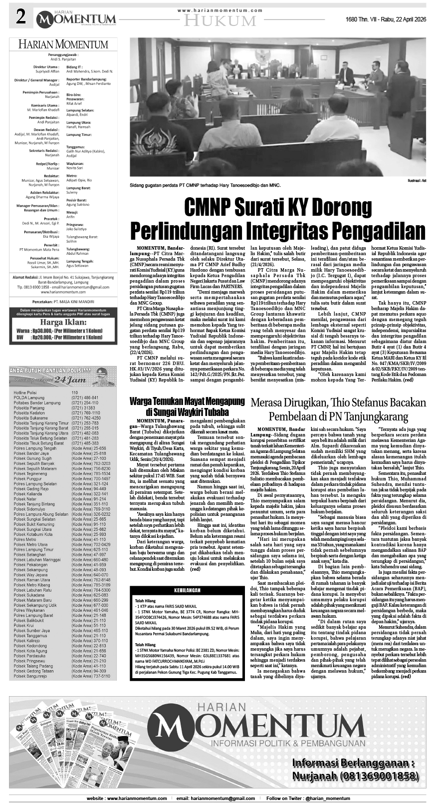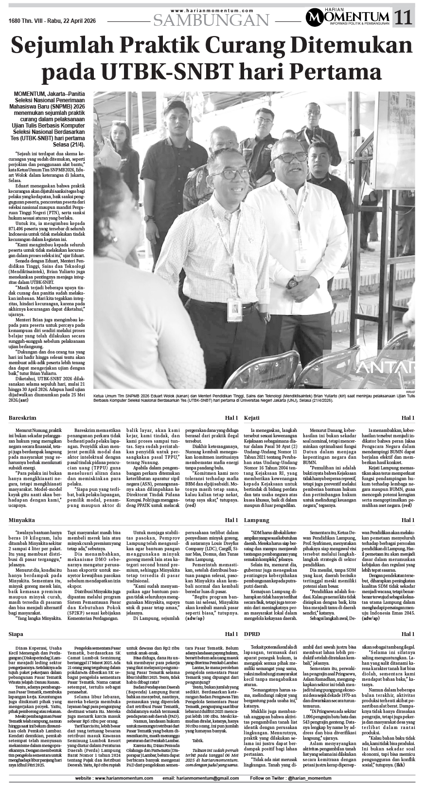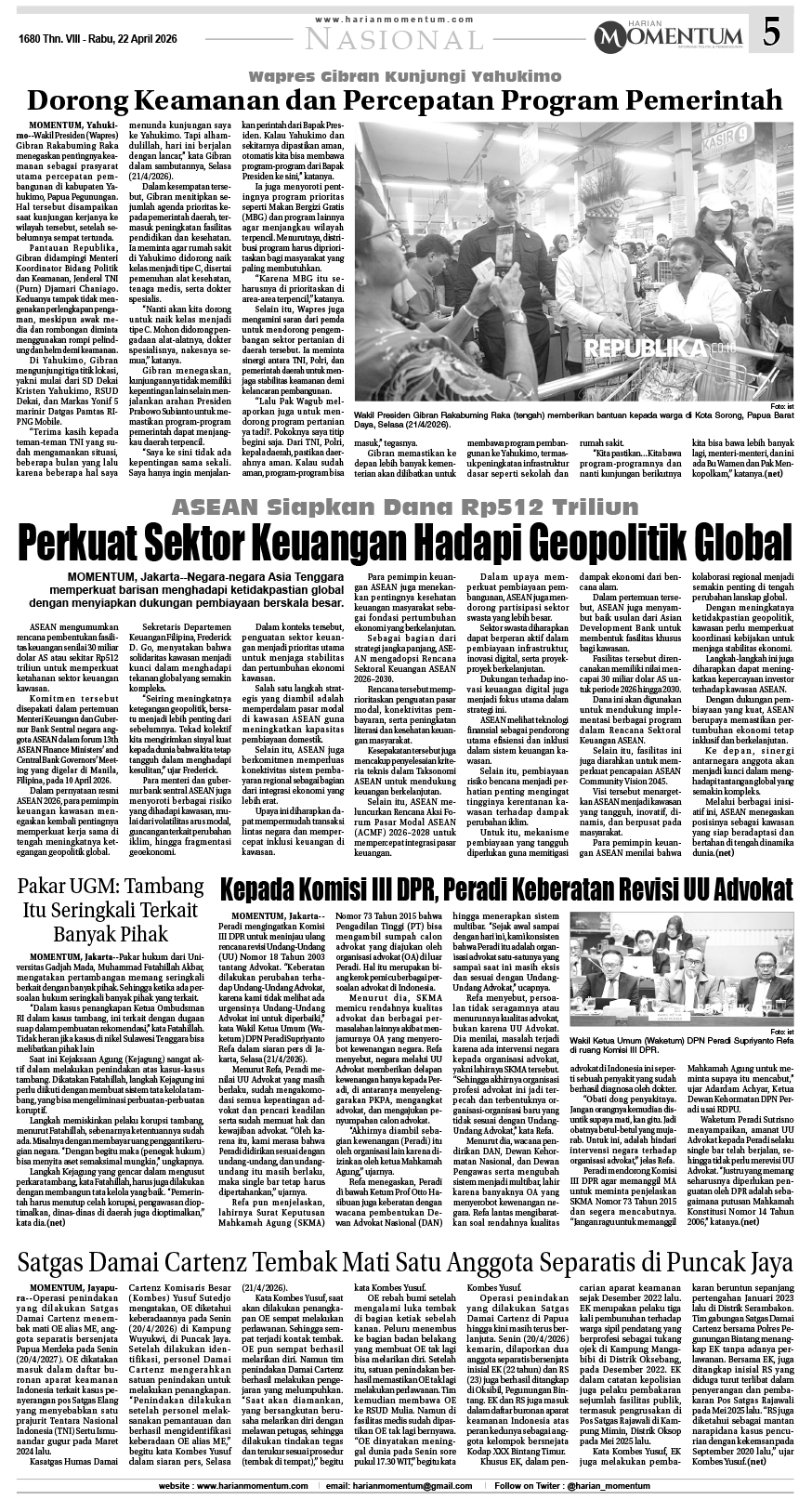 HARIAN MOMENTUM EDISI 22 APRIL 2026 ...