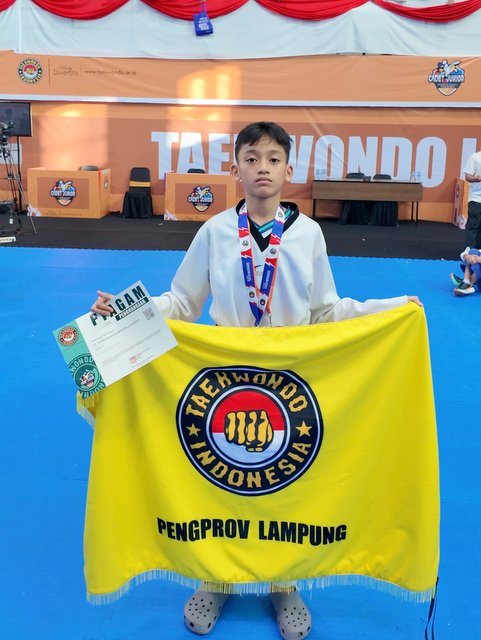 MOMENTUM, Bandarlampung--Atlet muda asal Lampung, Athar Al Khalifi, menorehkan prestasi membanggakan dengan meraih medali perunggu pada Kejuaraan Nasional Taekwondo Cadet dan Junior (U-13 & U-16) 2026 yang berlangsung di Samarinda, Kalimantan Selatan.