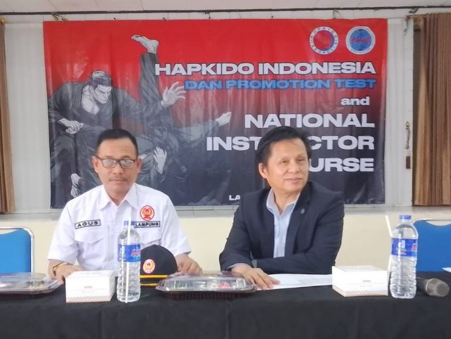 Ia hadir sebagai penguji dan pemateri, didampingi Ketua Umum Hapkido Lampung Ida Bagus Wiguna.